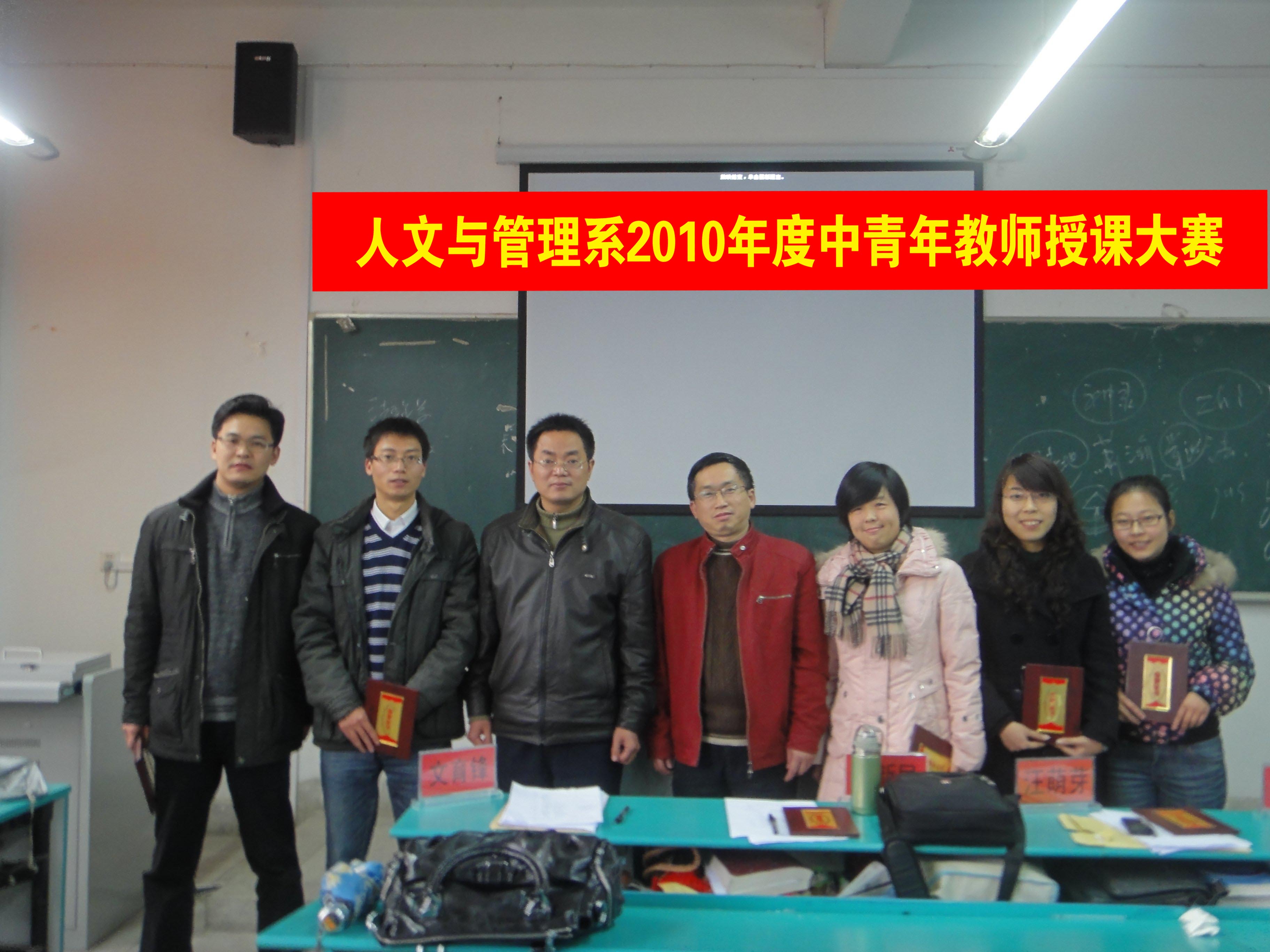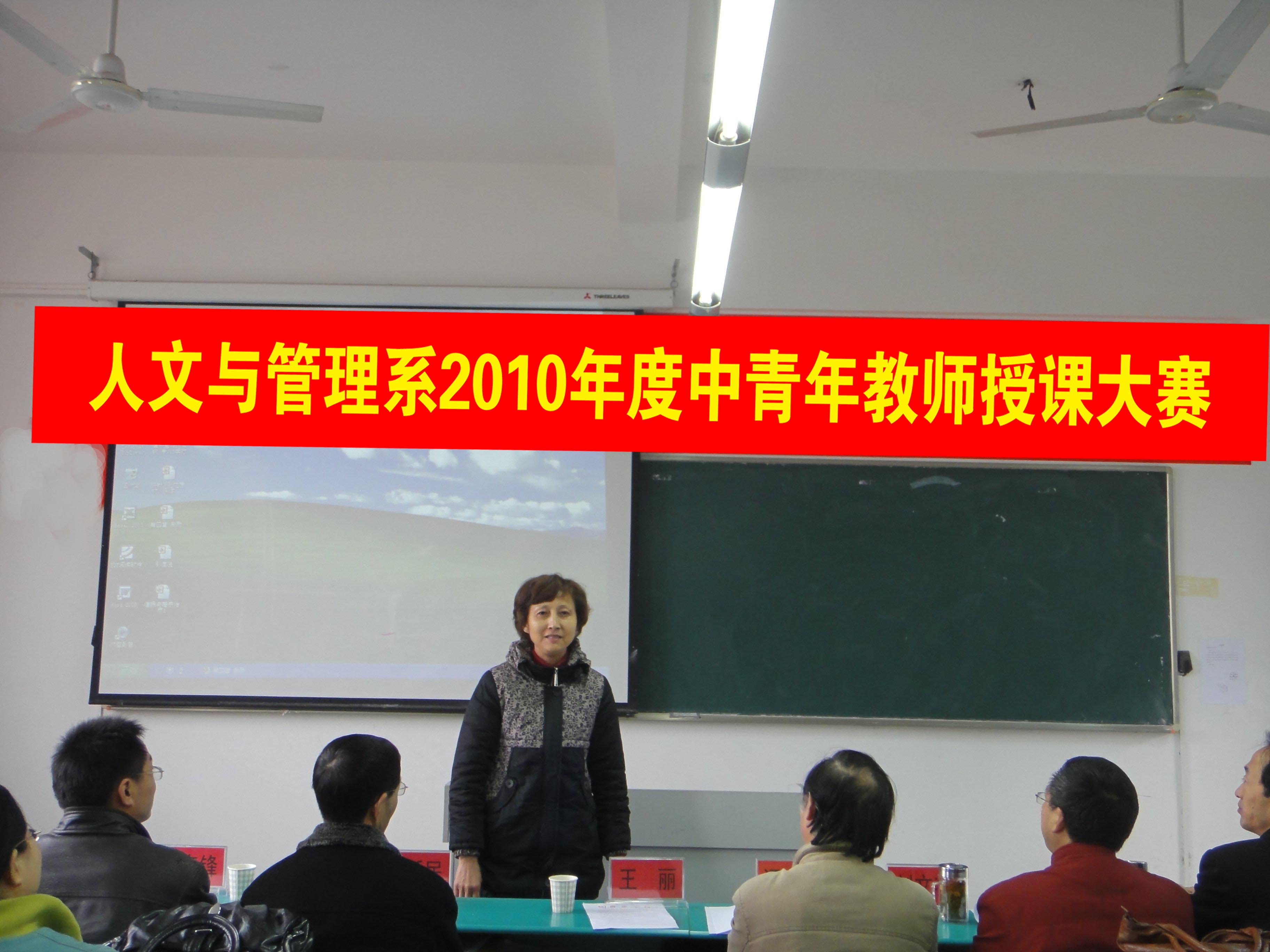 为了进一步加强中青年教师的队伍建设,不断提高中青年教师的业务素质和教学水平,更好地挖掘其教学潜能,促进教师间的相互学习和提高, 12月12日,人文与管理系在西教307教室举行了2010年度中青年教师讲课比赛。系领导阮笑芳书记、胡鸿主任、刘华副书记、王军副主任出席比赛。教务处处长王丽应邀莅临指导,校办主任方国庆副教授、教务处副处长刘文艳副教授、预防教研室文育锋副教授、本系心理教研室主任刘新民教授、生理与神经生物学教研室主任汪萌芽教授等应邀担任评委。比赛的上、下午场分别由胡鸿主任、王军副主任主持。