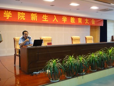 9月19日下午,应人文与管理系之邀,教务处副处长杜少陵、保卫处科长周黎明分别就教学与学籍管理、安全防范等主题对新生进行专题教育,杜少陵副处长向大家详细介绍了公司教学管理方面的有关法规、政策和学籍管理流程;周黎明科长向同学们介绍了高校易发的六种案件及这些案件的易发区域、应对方法,两个讲座实例生动,闻者心领神会。
