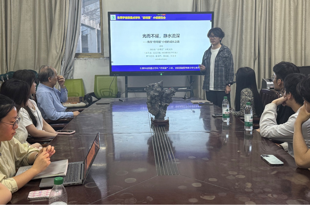 4月10日晚,生理学省级重点学科“启明星”小组在bevictor伟德国际生理学与神经生物学教研室举办了创新型人才成长历程分享会。2021级“启明星”小组成员蒋晗以“光而不耀,静水流深——我在‘启明星’小组的成长之路”为主题,分享了自己作为创新型人才的成长历程。会议由汪萌芽教授主持,“启明星”小组指导教师、在校和毕业成员共100余人在线上、线下参加了会议。