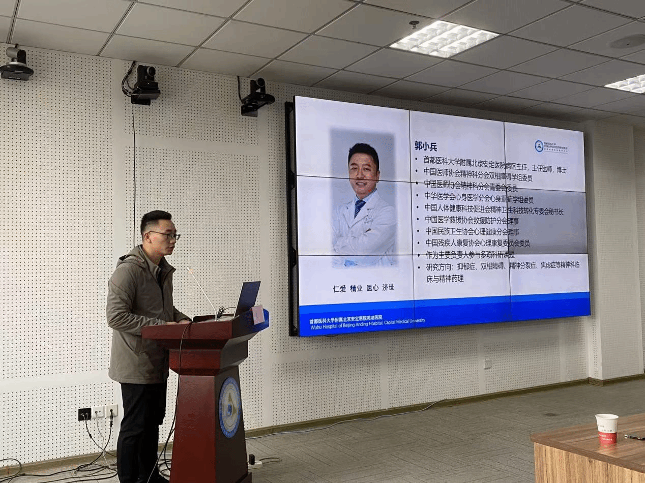 20日,公司心理学教研室许亚军副教授受邀在附属北京安定医院芜湖医院举办的芜湖市继续医学教育项目精神分裂症与神经调控进展研讨班上作《精神分裂症的司法鉴定》的报告。黄龙副教授主持由北京安定医院病区主任郭小兵作《如何选择抗精神病药物》报告。