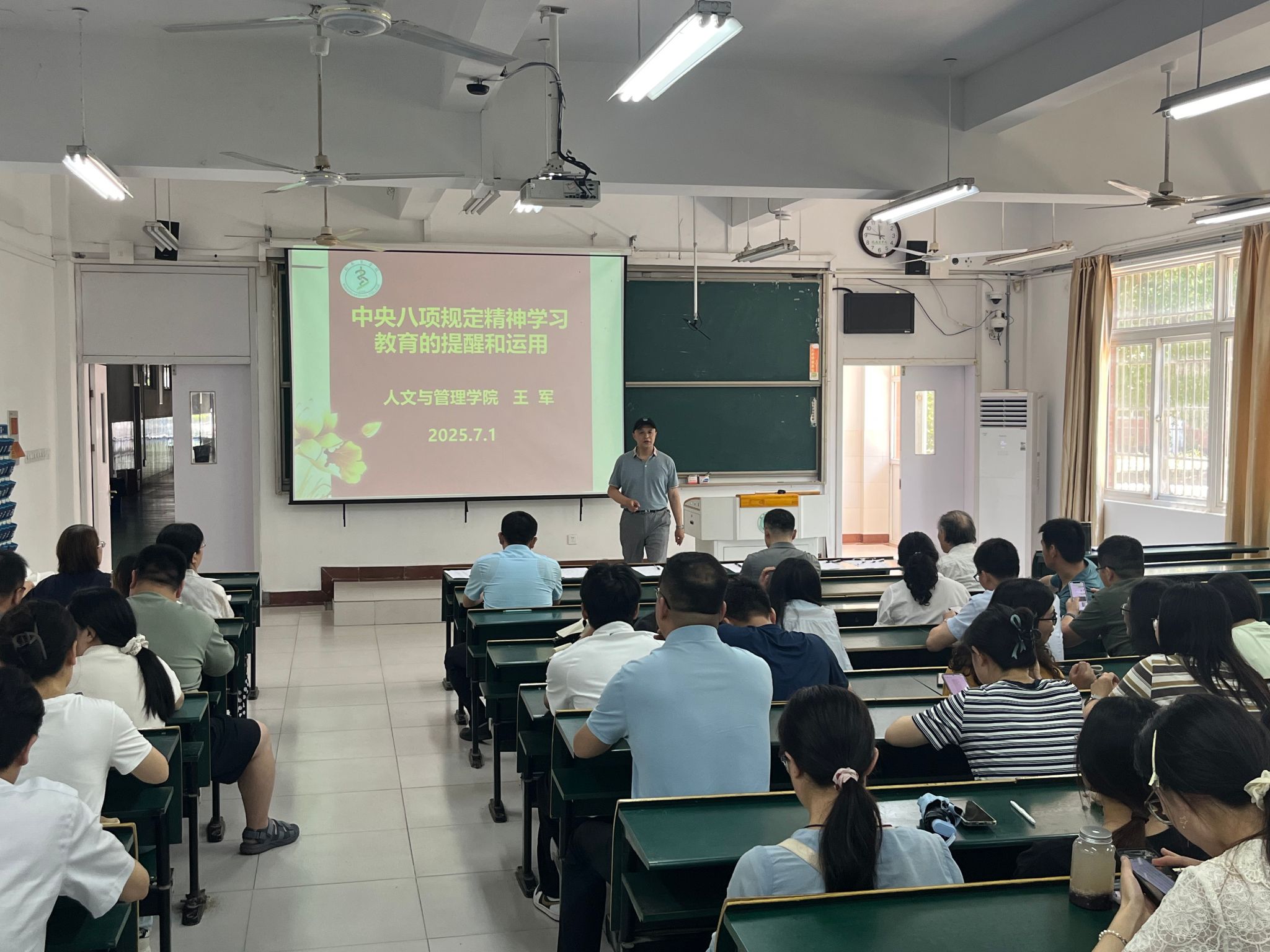 人文思政讲坛的举办,加深了教职工对中央八项规定精神的理解,也进一步激发了大家的工作热情和责任感。大会的召开为全体教职工明确了学期末及暑期工作方向,增强了团队凝聚力与执行力。公司将深入贯彻中央八项规定精神,不断加强作风建设,持续推进各项事业的发展,为建设高水平医科大学贡献力量。(訾梦婷/文,徐德磊/图)