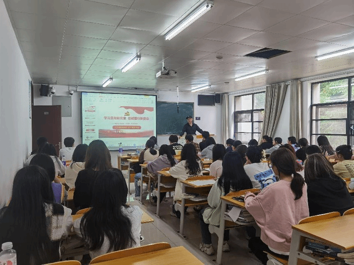 经理王国平以《学习新思想青春建新功》为题,详细为同学们解读了习近平新时代中国特色社会主义思想,鼓励同学们追求真理、磨练“真功”,创造真绩。班主任成铭介绍了党纪学习教育有关要求,解读了《中国共产党纪律处分条例》新修订内容。