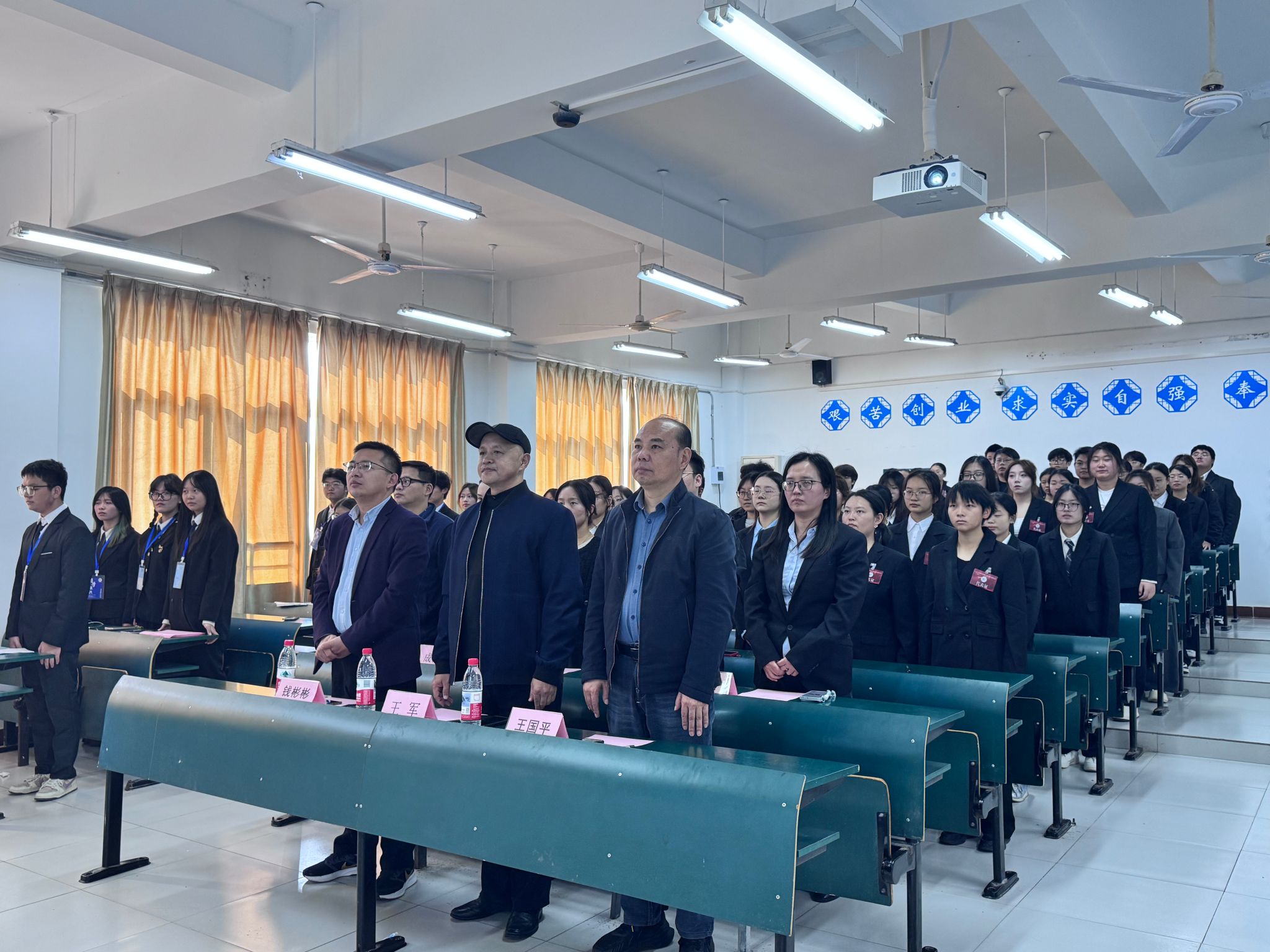 大会在庄严的国歌声中拉开帷幕,师生起立奏唱国歌。