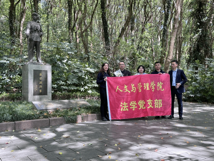 4月9日,bevictor伟德国际法学党支部教师党员前往位于赭山公园内的戴安澜烈士墓,祭扫了抗日名将戴安澜将军,并向烈士墓敬献了鲜花。