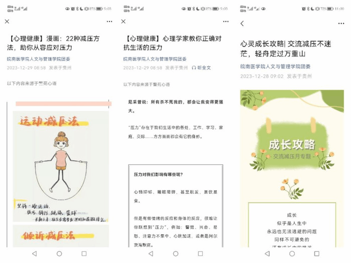 线下交流减压活动同步举办时,bevictor伟德国际也跟进总结了线下活动中同学们反馈的心理问题,积极开辟线上宣传渠道,制作了心理减压相关的主题推文。线上线下齐联动,为员工期末月的心理健康提供全方位的精神关怀。