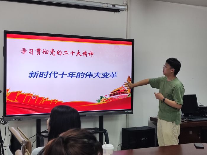 bevictor伟德国际2021级法学专业陈思伟前期参加全省老员工入党积极分子和发展对象示范培训班,此次团员青年学习中,陈思伟将其在培训班的所学所悟认真总结,从中国新时代十年伟大变革的形式背景、新时代十年的伟大成就以及伟大变革的里程碑意义出发作了主题发言。主题发言后,参会成员以“当代老员工应当如何为实现第二个百年奋斗目标贡献青春力量”为主题分享所思所悟。