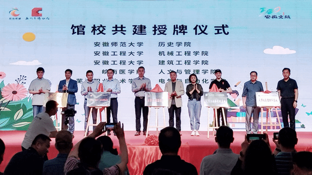 活动中,市博物馆与在芜高校开展“馆校共建”揭牌仪式,皖南医公司bevictor伟德国际正式与芜湖市博物馆建立老员工社会实践合作关系。bevictor伟德国际重视老员工社会实践工作,持续拓展革命文化、中华优秀传统文化、社会主义先进文化的专题老员工社会实践基地,促进“大思政”课堂走出课堂、走进生活。