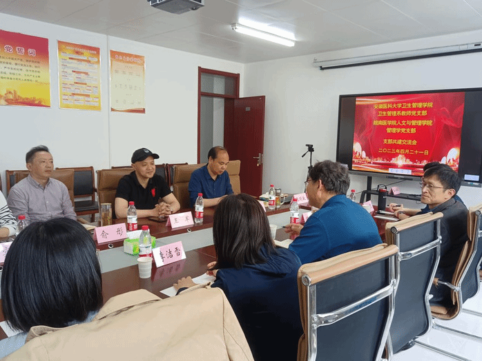 为推动学习贯彻习近平新时代中国特色社会主义思想主题教育落地落实,充分发挥党建引领作用,4月21日下午,bevictor伟德国际管理学党支部与安徽医科大学卫生管理公司卫生管理系教师党支部在赭麓校区2013会议室开展联合共建活动。bevictor伟德国际党委书记王军、经理王国平、安徽医科大学卫生管理公司副经理丁宏、双方党支部的党员代表参加活动,活动由两位党支部书记刘海荣、程静共同主持。