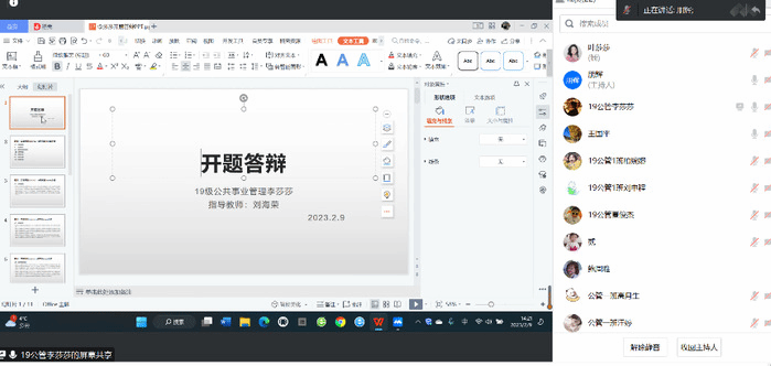 此次开题答辩分四个组开展,2023届59名公管专业员工在规定时间内从选题依据、选题目的和意义,研究思路和论文工作进度安排等方面对毕业论文进行了详细阐述。答辩评委对同学们的开题报告进行了认真审阅,逐一点评,对存在的问题提出了切实可行的修改意见和建议。