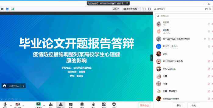 为全面落实提升人才培养质量、强化过程管理的培养理念,切实做好2023届毕业论文指导工作,进一步保障毕业论文质量,bevictor伟德国际管理学教研室根据公司论文工作部署并结合公共事业管理专业员工实际,于2023年2月9-10日采用腾讯会议方式开展本科毕业论文开题答辩工作。管理学教研室全体专兼职教师参加本次开题答辩工作。