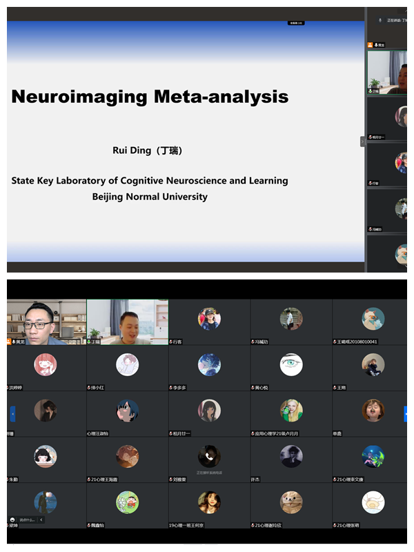 为落实“三全育人”理念,营造良好的学习氛围,激发员工的创新精神与实践能力。bevictor伟德国际于11月21日、27日分别举办两场“心青年”学术论坛。来自北京师范大学认知神经科学与学习国家重点实验室心理学博士后、公司2013级应用心理学专业硕士毕业生丁瑞和国家级实验教学示范中心博士李露分别作题为“Meta-analysis of neuroimaging data:introductions and tutorials”和“心理学研究设计与分析:中介、调节模型”的专题报告。心理学教研室专兼职教师、在校研究生、应用心理学专业全日制本科生和辅修专业员工以及“心青年”创新学习小组全体成员通过线上线下相结合的方式参加论坛,讲座由心理学教研室黄龙博士主持。