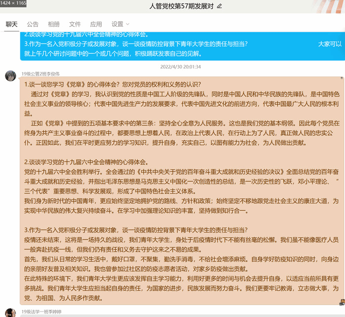 为进一步加强对入党积极分子和发展对象的教育培养,经公司党委研究决定,于2022 年 4月 24日开始举办中共皖南医公司委员会党校第五十七期培训班通过线上开班。本次党课由培训采取专题讲座、观看视频、个人自学、在线研讨、学唱《国际歌》等形式,bevictor伟德国际共47名入党积极分子和19名发展对象参加培训,由班主任王燕威带班培训。