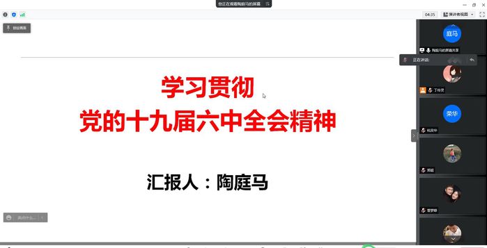 4月21日下午,bevictor伟德国际开展线上主题党日活动,举办第三期“人文思政学习讲坛”暨党的十九届六中全会精神专题读书班。会议由公司党委书记王军主持,邀请马克思主义公司副经理陶庭马博士主讲,全院教职工参加。