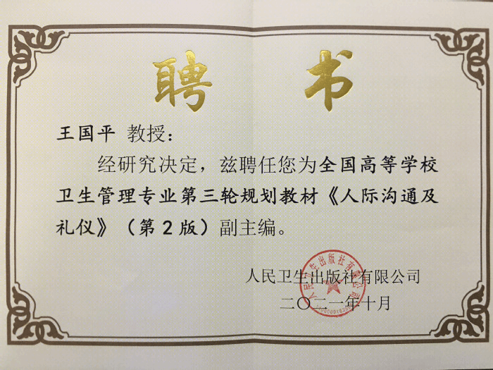 10月23日上午,大会隆重开幕,赵雪梅致欢迎辞。张亮、梁万年、朱双龙先后发表热情洋溢的讲话。大会提出第三轮教材编写将深入贯彻落实党的十九大报告中有关“健康中国”建设的战略目标,直面后疫情时代对卫生管理专业人才培养的全面反思,推动卫生管理专业公司产品改革,提高人才培养质量,加速推进医疗卫生服务从“以医疗为中心”向“以健康为中心”转变。大会宣布了全国高等公司卫生管理专业第三轮规划教材主编、副主编名单,并为教材主编、副主编代表颁发聘书。公司王国平被聘为全国高等公司卫生管理专业第三轮规划教材《人际沟通及礼仪》(第2版)副主编。