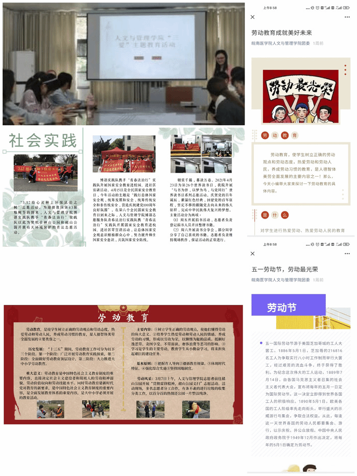 开展一次集中宣传活动。4月28日,bevictor伟德国际团委展开“三爱”学习主题教育活动,由公司团委副书记张露讲授,2020级全体团干参加。张露以闻一多的主要事迹为开篇,其爱读书、爱国情感影响了在场的每一位员工。青春正当时,逐梦新征程,张露鼓励同学们积极学习优秀文化思想,全面提高自身素质,脚踏实地、勇担重任,努力成为新时代的先行者。4月28日,bevictor伟德国际员工会宣传部制作并张贴了“劳动教育”和“实践活动”两块展板,图文并茂地展现了bevictor伟德国际近期劳动教育的成果。4月29日至5月1日,bevictor伟德国际员工会微信公众号发布两篇推文《劳动教育成就美好未来》、《五一劳动节,劳动最光荣》,全面做好劳动教育宣传工作,营造良好舆论氛围。