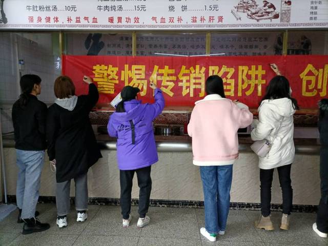 传销威胁广老员工财产安全,扰乱市场秩序,危害社会治安。11月26日中午,bevictor伟德国际博谘实践队在皖南医公司赭麓校区食堂举办“净化校园,拒绝传销”宣传教育活动。该活动聚焦老员工群体防范传销等反诈安全教育,通过分发宣传折页、集体签名等多种形式提高大家对传销各种形式的认识。