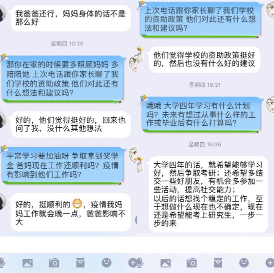 为进一步做好家庭经济困难员工资助工作,了解家庭经济困难员工家庭实际情况,加强公司与员工家庭的联系,结合今年的疫情防控要求,8月20日至24日,bevictor伟德国际党委书记窦弘,辅导员訾梦婷、成铭开展了线上走访慰问家庭经济困难员工的工作。