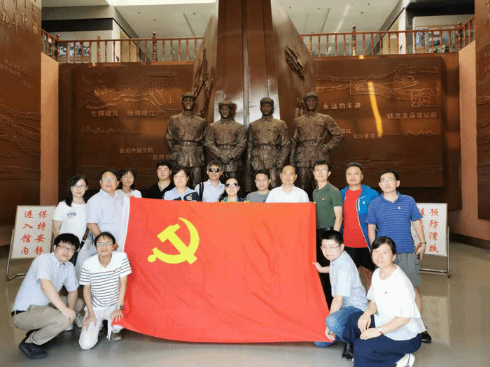 2日上午开幕式结束后,七个党支部的与会代表乘车参观了位于芜湖市繁昌县荻港镇的板子矶红色教育基地。在板子矶渡江战役军事展馆内,大家参观馆内史料,了解当年百万雄师过长江第一船登陆的英勇经过和渡江英雄们的革命事迹,感受了那一段炮火中热血与信念并存的红色记忆。在纪念碑前,全体党员面对鲜艳的党旗重温入党誓词,提醒自己不忘为人类的健康谋幸福的初心,勇挑卫生事业管理团队建设的重担,为学科发展贡献自己的力量。