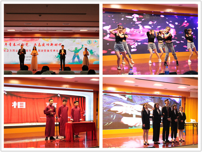 峥嵘历史永铭记,忆苦思甜感今朝。灯光进场、观众入席,文艺展演共分为三个篇章,第一篇章“回首激情岁月、讴歌五四热潮”:一首激昂奋进的《光荣啊,中国共青团》拉开了演出的帷幕,热情欢快、节奏明朗的开场舞《la vie en rose》展现了青年老员工无限的激情活力;情景朗诵《再见了,我的母校》和群口相声《我的大学》在追溯校园往昔美好生活的同时,也诉说着对母校的无限依恋与离别不舍,寄语全体学子应不负韶华时光、勇于热血拼搏。第二篇章“心怀爱国之情、立足专业发展”:青春红舞《沂蒙颂》以优美灵动的舞姿展现了芳华之美,对沂蒙人民无私奉献精神致以崇高敬意;心理剧《我不是black dog》和器乐合唱则以专业发展为点辐射贡献社会之志,抒发了青年学子不忘初心、砥砺前行的爱国情怀。其间,嘉奖一年来公司优秀学子视频展播,“五四青年的一天”公司微视频大赛颁奖仪式将整场演出气氛推至高潮,在座领导老师为各位获奖同学颁发证书以示鼓励,并以党委副书记、经理章尧,公司领导和各教研室老师的签名明信片寄语广大学子,自信人生二百年,会当水击三千里,青年应胸怀报国之情、勇立鸿鹄之志。第三篇章“聚力青春向党、建功时代远方”:大合唱《同桌的你+放心去飞》、中国舞《江南夜》分别以跳跃的音符演绎青春的活力,用柔美的舞姿展现青春的风采;集体朗诵《以青春的名义宣誓》让生命之花盛开在祖国最需要的地方,誓言灵动飞扬却有力而高亢。最后,全体团员庄严宣誓:矢志不渝跟党走、献身建功新时代。整场文艺展演在公司辅导员和员工代表的大合唱《我和我的祖国》中圆满结束。