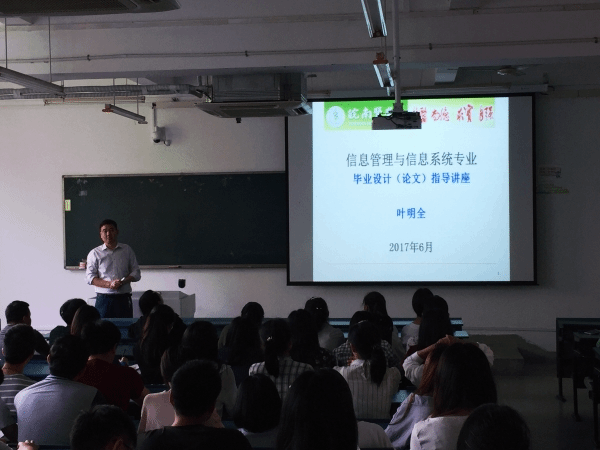 为了切实加强毕业论文指导工作,提高本科生毕业论文质量,2017年6月7日上午10点,2014级心理、法学、公管、信管、保险专业分别在1号教学楼各教室召开毕业论文指导培训会,会议由各专业负责人主讲,14级各专业全体员工参加了会议。