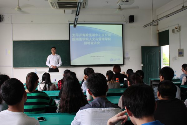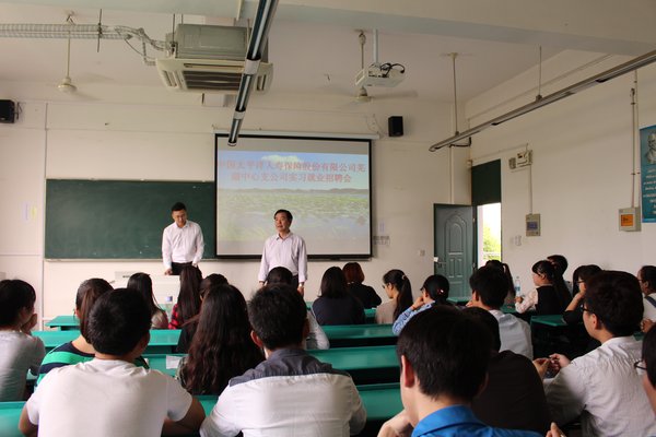 抓好实习助就业,实践育人谋未来。为切实做好实习、就业服务工作,5月6日上午,bevictor伟德国际于2206教室组织召开中国太平洋人寿保险有限公司芜湖市中心支公司实习、就业招聘宣讲会。邀请公司培训部讲师、门店项目负责人解钢进行招聘宣讲,bevictor伟德国际经理胡鸿、保险学教研室主任俞彤、公司秘书吴映辉、2013级辅导员张欣慧参会,2013级保险学专业全体员工和2012级部分毕业生到场参加并进行交流互动。会议由胡鸿主持。