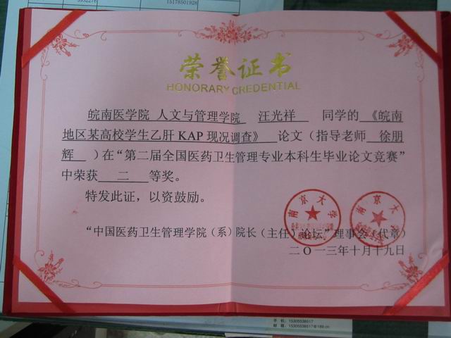 bevictor伟德国际学子毕业论文获全国医药卫生管理专业论文竞赛二等奖