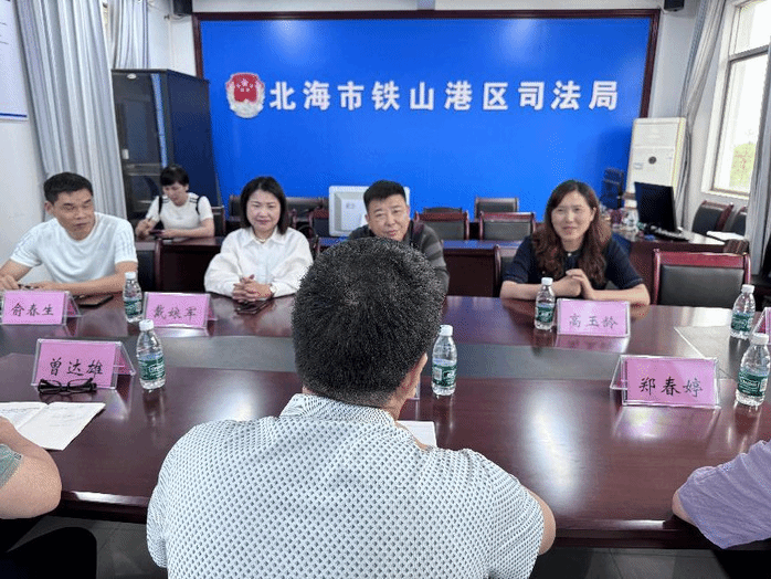 bevictor伟德国际法学教研室主任和党员教师高玉玲、法学党支部副书记王冠男,安徽易仑律师事务所党支部组织委员和2022年度全省司法行政系统劳动模范、2022-2023年度全省律师行业优秀共产党员俞春生律师,安徽易仑律师事务所主任和党员律师戴林等一行人来到广西壮族自治区北海市铁山港区司法局,与铁山港区司法局主要领导和党员同志进行了深度座谈。