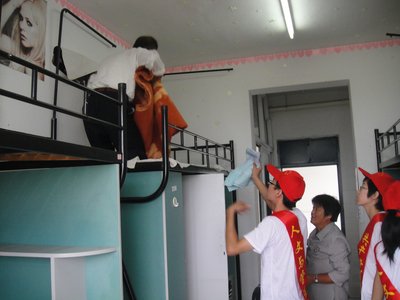 9月11日,人文与管理系志愿者将新生领到宿舍后,热情地给新生们打扫卫生、整理床铺,使宿舍干净整洁。安顿好住宿后,他们还为新生和家长详细介绍公司的概况,解答新生提出的专业学习、生活等方面的疑问,帮助学弟、学妹们尽快适应大学新的集体生活,整个场面洋溢着一种温馨、感人、和谐的氛围。