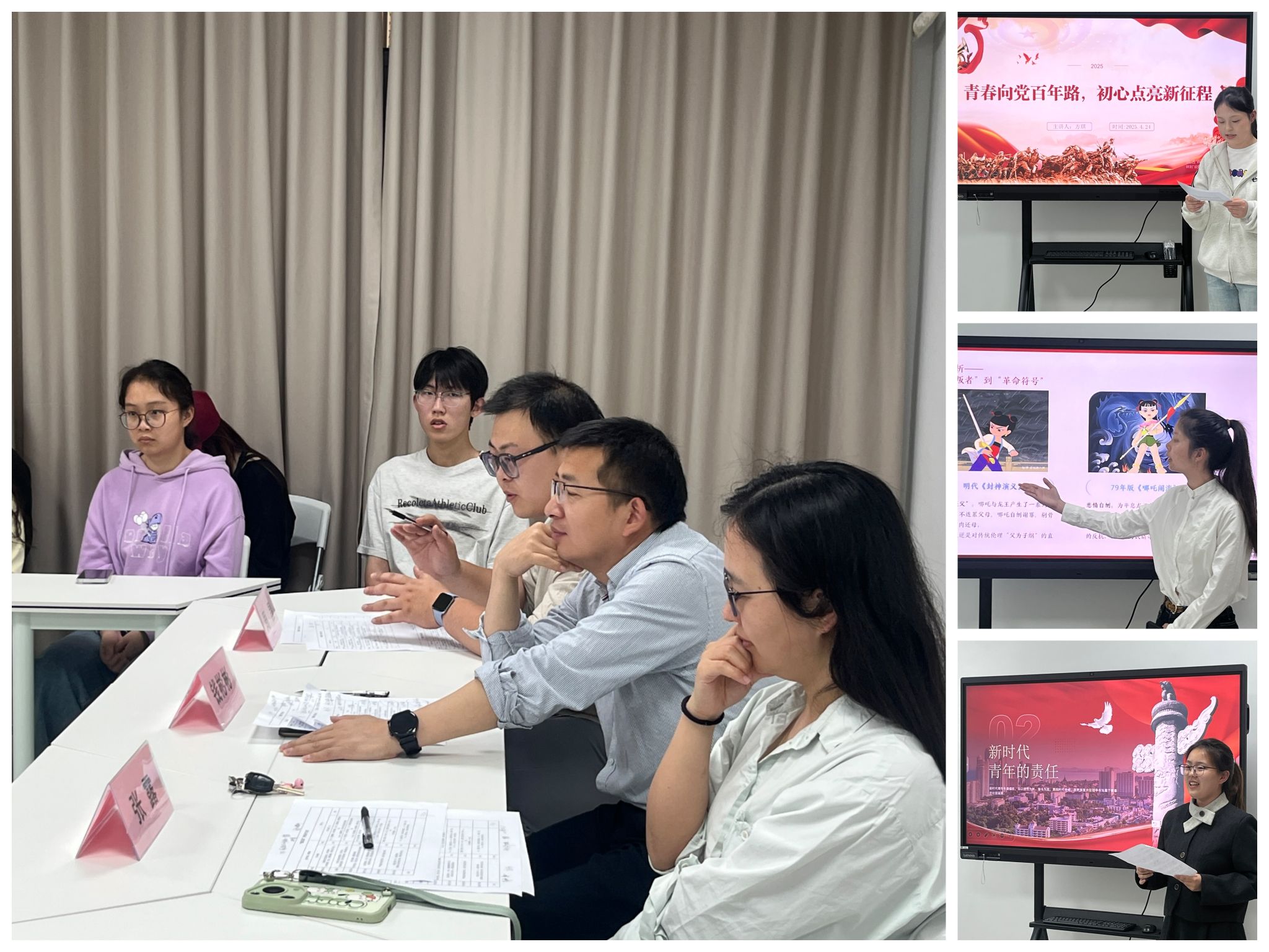 比赛中,选手结合自身学习、实际生活,以新颖的视角、多样的形式进行微团课展示。她们或是讲述红色故事,带领大家重温革命先辈的英勇事迹,传承红色基因,或是聚焦当下社会热点,引导同学们思考青年在时代发展中的使命与担当。一场场精彩的“授课”赢得了现场观众的一阵阵掌声。随后,评委老师从内容主题、语言表达、教学方法、PPT制作等多个方面对选手进行了细致的点评和指导。此次微团课院内初选赛的开展,不仅为参赛选手提供了一个展示自我、锻炼能力的平台,也为全院共青团员带来了一场精彩的思想盛宴,激发了大家的学习热情和奋斗精神。(张露、杜思雨/文,赵馨蕊/摄)