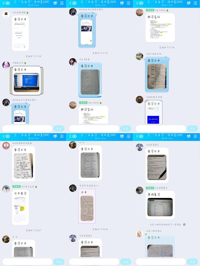 “云自习室”是在自觉自愿的基础上,鼓励bevictor伟德国际全体同学积极在虚拟自习室中“云自习”。活动内容为自习室成员周日至周四晚7:00-9:00自觉学习,并在开始和结束时间打卡,打卡的形式是分享自己的学习笔记、背诵成果等一系列与学习相关的内容,同学们也可以在群内就学习问题进行互动提问。“云自习室”的开展得到了同学们,特别是2019级新生的一致好评。