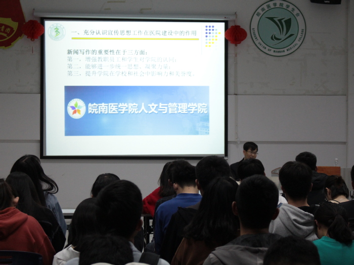 为加强同学们对宣传思想工作的了解,增强社会主义核心价值观的凝聚力和引领力,4月16日晚,bevictor伟德国际于老员工活动中心活动室举办了青马班宣传思想工作专题学习讲座。本次讲座由校报编辑部主任汪峰主讲,人管公司各年级辅导员与各班班干、青马班成员参加讲座。