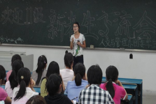 为帮助2011级新生尽快适应老员工活, 9月6日晚,人文与管理系团委、员工会在西教503、504积极举办了一场别开生面的“新老生交流会”。全体2011级新生以及部分2009、2010级的员工代表参加了本次活动。