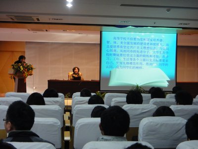 杨建勤副部长向大家介绍了员工党员的入党条件和发展程序,对入党的思想动机、党员的权利和义务、政治与思想的领导、党的组织制度等做了详细阐述,并就如何正确规范地填写入党志愿书和其他申请材料、表格等作了说明。在场的人文与管理系师生们聆听了讲座。