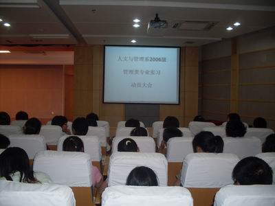5月31日上午,人文与管理系在三楼学术报告厅召开了2006级管理各专业员工实习动员会。系主任胡鸿、党总支书记方继经、副主任刘华、员工秘书蒋群、2006级辅导员宋蔼丽及2006级全体同学参加了会议。动员大会由蒋群主持。