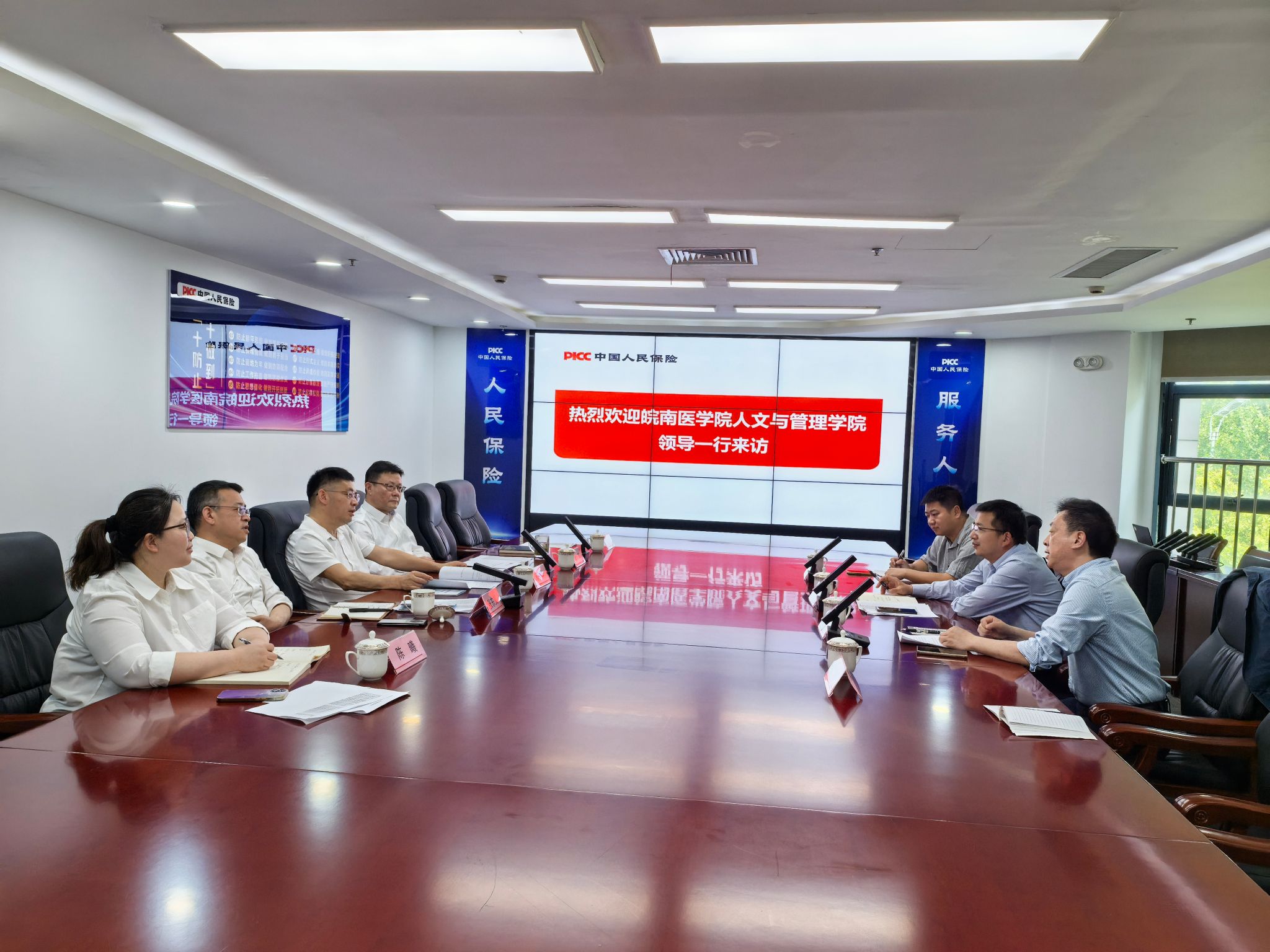 钱彬彬感谢中国人民财产保险股份有限公司安徽分公司一直以来对公司实习就业工作的支持,介绍了公司及公司的基本情况,期待双方加强合作、互惠共赢。俞彤教授详细阐述了公司医疗保险专业的发展历史、办学特色、人才培养及就业质量,指出当前医疗保险专业具有良好的发展前景,希望双方进一步深化合作。中国人保安徽分公司副总经理邓国华介绍了公司的基本情况,指出公司当前发展需要大量优秀人才,并为人才职业发展提供充分支持和保障。双方围绕人保财险安徽区域的实习就业一体化、“订单班”、校企合作等内容开展了交流。