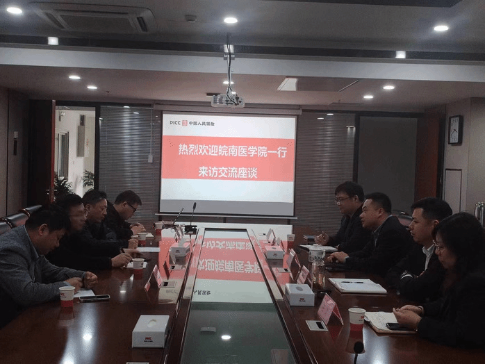 人保财险马鞍山市分公司总经理王林镜热情接待了公司一行并开展座谈交流。王林镜介绍了人保财险马鞍山市分公司基本情况、经营业务范围、管理制度以及人才队伍建设等情况。钱彬彬感谢人保财险马鞍山市分公司长期以来对公司医疗保险专业的实习和就业工作的支持,介绍了公司和公司的基本情况等。双方围绕实习就业等方面工作进行了深入交流。