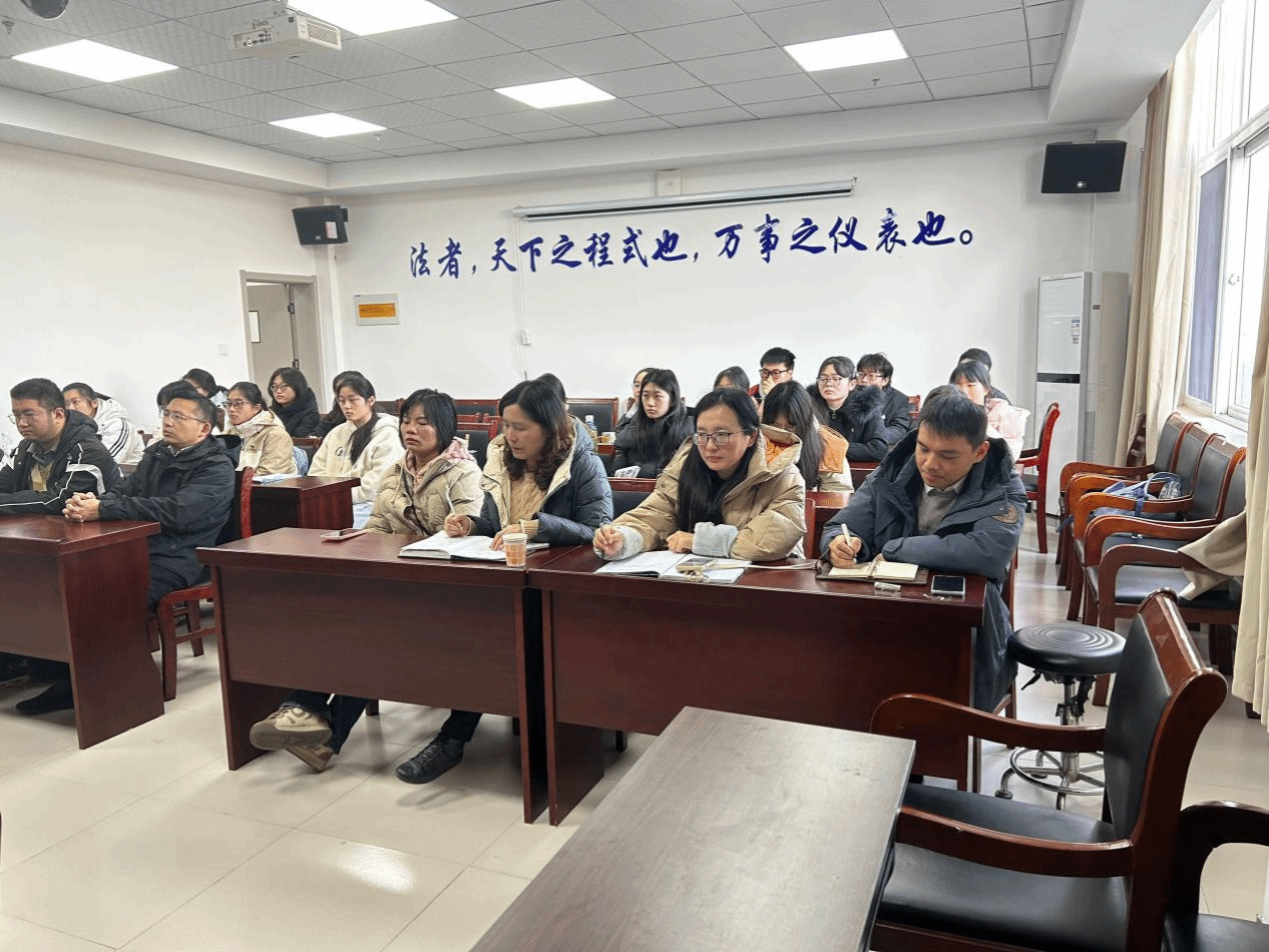 12月12日上午,为深入学习贯彻习近平法治思想,贯彻落实党的二十大精神和二十届三中全会精神,bevictor伟德国际党委副书记钱彬彬、教务处胡蝶、法学教研室主任高玉玲、法学专业师生代表在公司7409模拟法庭齐聚一堂,通过线下的方式观看直播,聆听全国人大常委会法制工作委员会研究室主任、法工委新闻发言人黄海华所作的专题授课,深刻领悟习近平法治思想的真理力量和实践伟力。